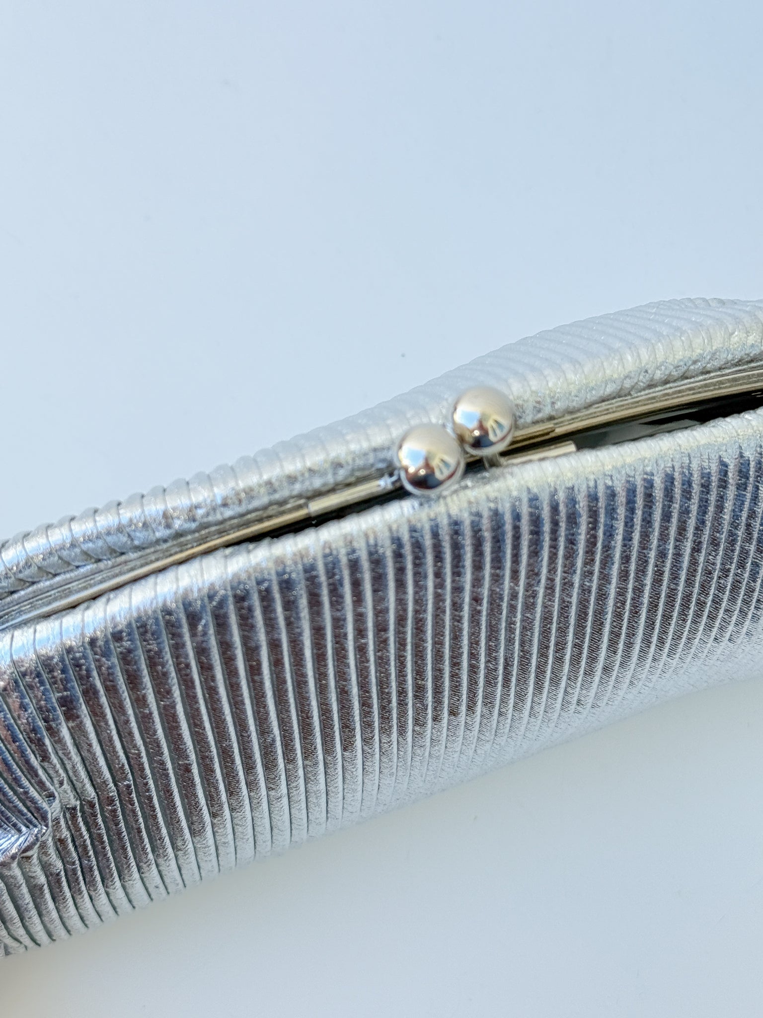 Pochette Pleated Metallic Clutch Handbag | Silver