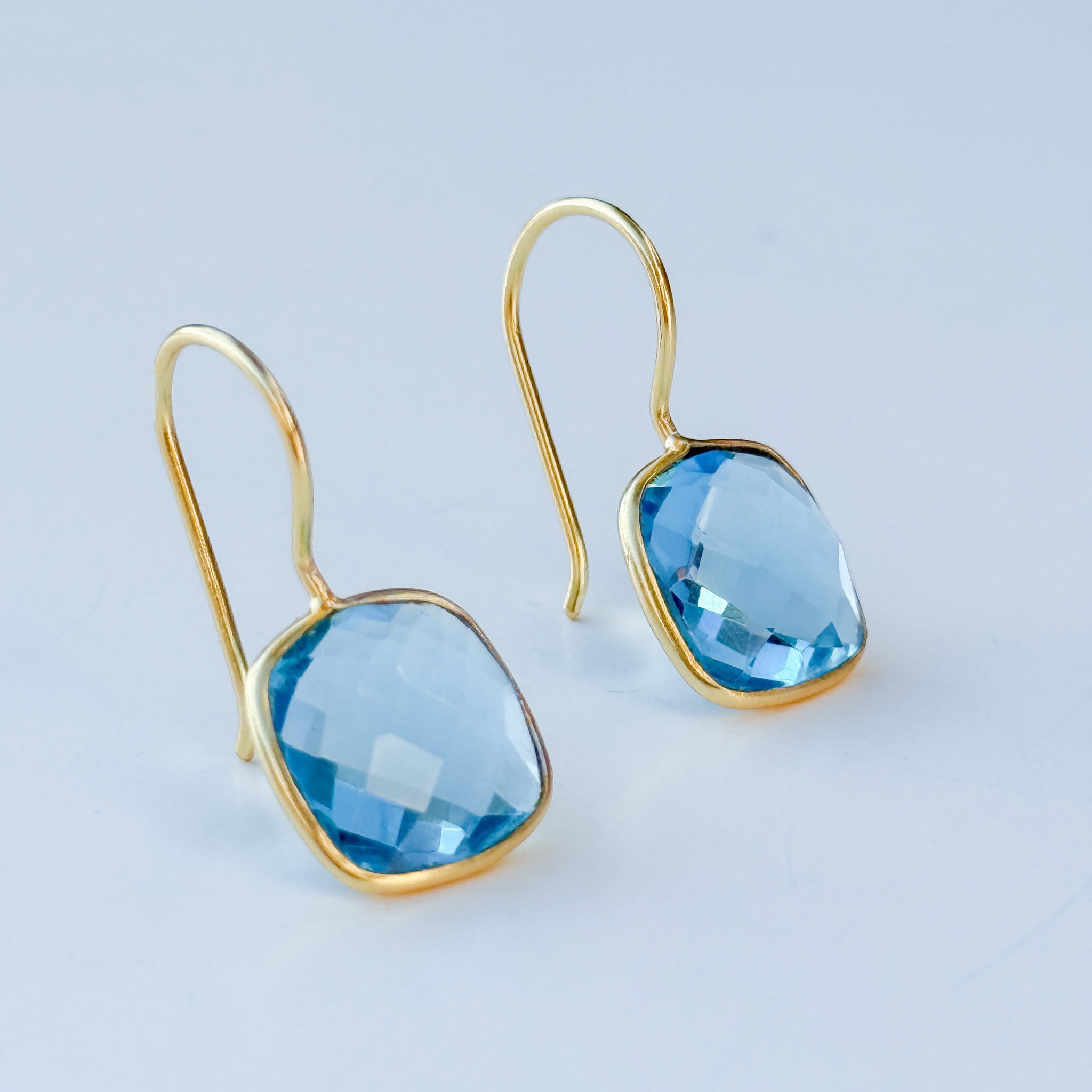 Dainty yet dazzling, these earrings are designed to shine from day to night. Hand-cut from genuine gemstones, each stone features a faceted cushion-square cut that catches the light beautifully, delivering shimmer and sparkle with every movement.