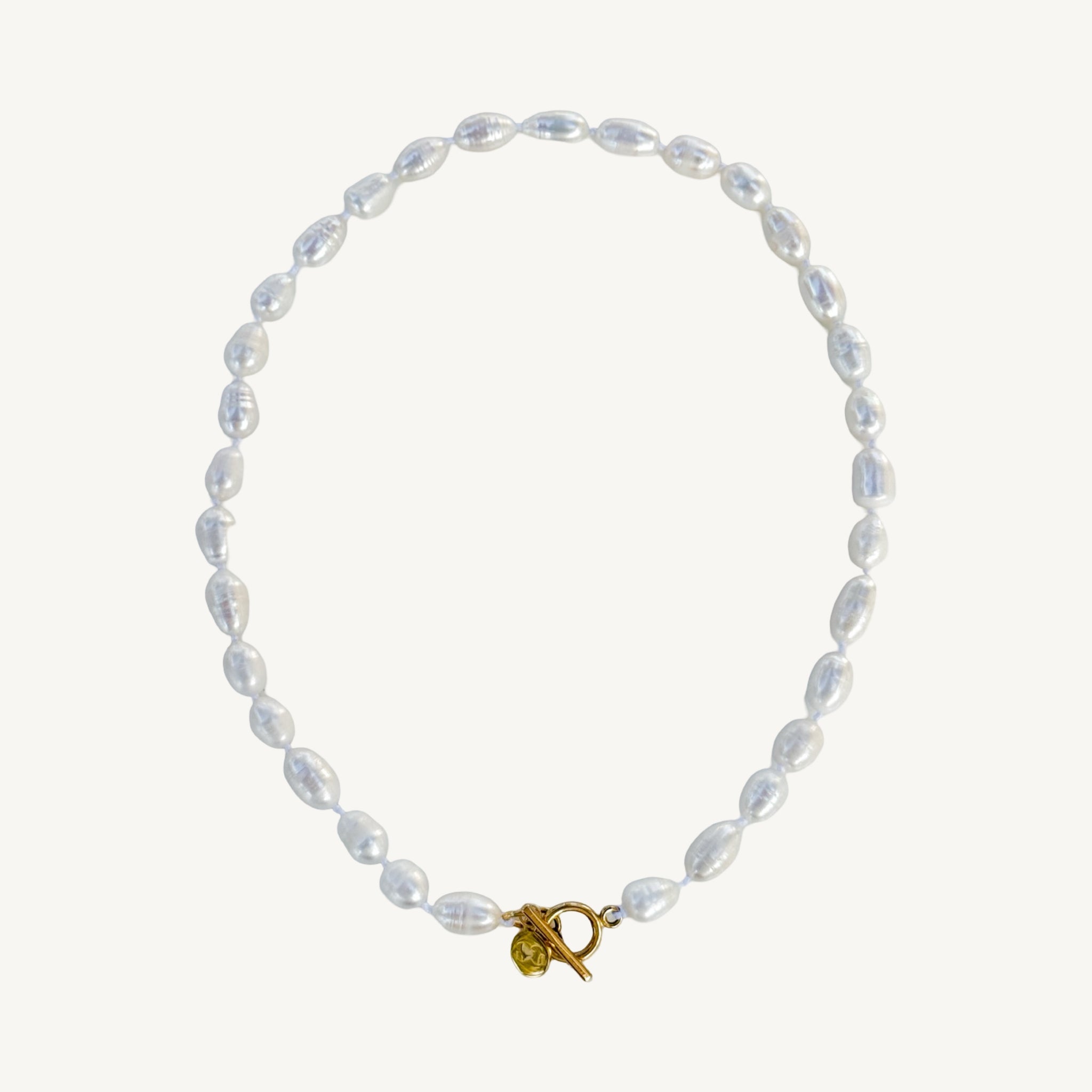 Handmade in Texas, this necklace is crafted with genuine Freshwater Pearls, each one selected for its natural luster and organic shape. The strand measures 17–18 inches and is finished with a sleek gold-plated stainless steel toggle clasp.