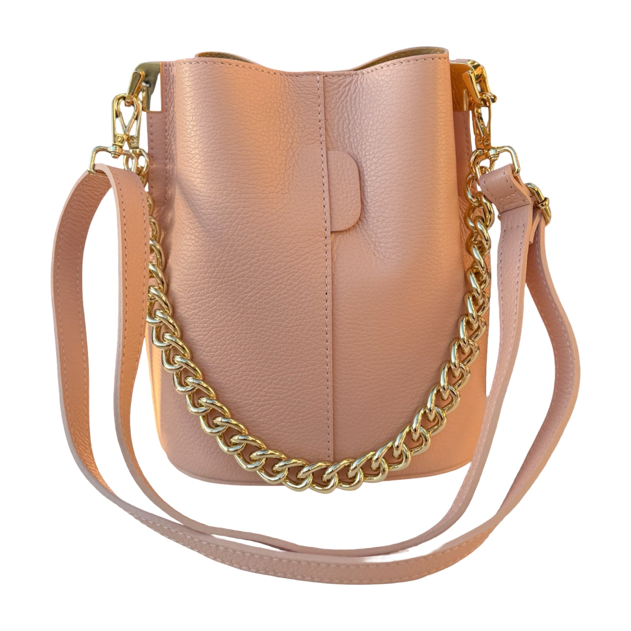 Meet The Chiara, a timeless bucket bag handcrafted in Italy from 100% genuine leather. Designed for the practical woman who loves style and everyday functionality, this softly structured silhouette is finished with a removable polished gold chain for a refined statement. It also comes with a long leather strap. Versatile, chic yet practical, The Chiara transitions seamlessly from day to night.