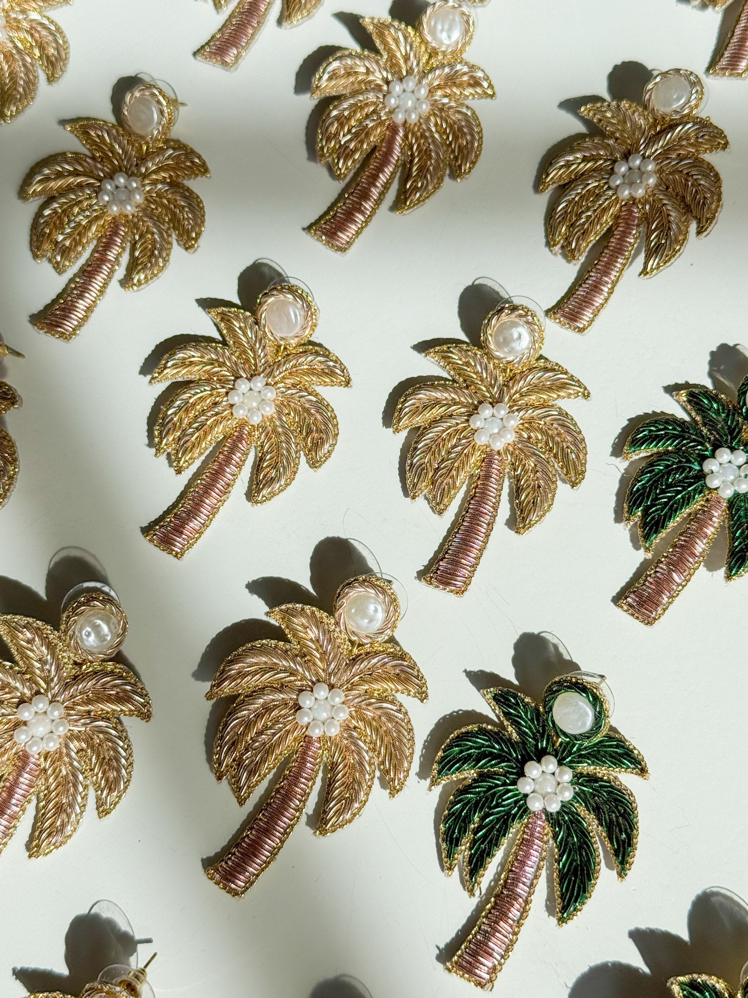 Part of our 2026 Resort Collection, the Palm Tree Earrings are a refined expression of coastal style. Handcrafted by skilled artisans, each pair features intricate embroidery with fine metallic threads, creating a luminous design with a gentle 3D look and small pearls. Inspired by tropical destinations and summer days, these earrings are designed to move effortlessly from day to evening. If you’re visiting a coastal destination, these earrings are a must perfect for sun-soaked strolls and summer evening dinners alike.