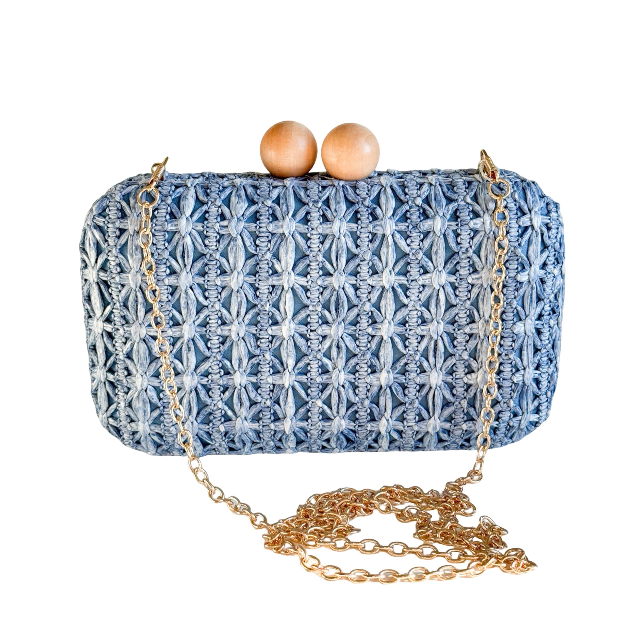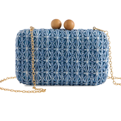 Kelly Raffia Clutch Handbag | Denim Blue