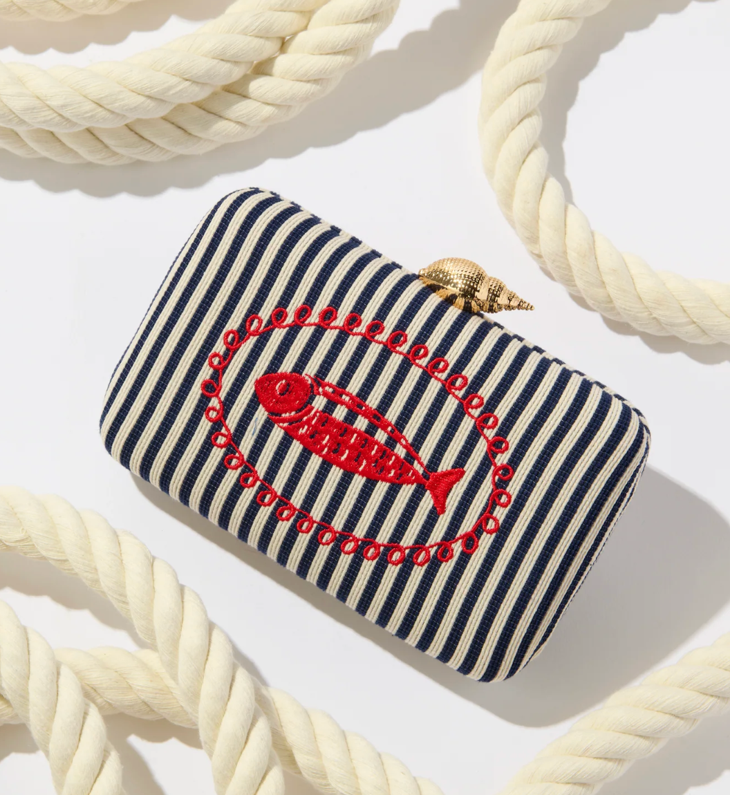 Meet the beautiful Saltwater Seashell Clutch Handbag. Featuring a chic striped or woven design and an elegant gold seashell clasp, this clutch is as stylish as it is functional. It includes a detachable cross-body chain, magnetic snap closure, and a handy inner zip pocket to keep your essentials in place. Whether you’re heading to brunch or a breezy beach soirée, the Saltwater Seashell handbag has you covered.